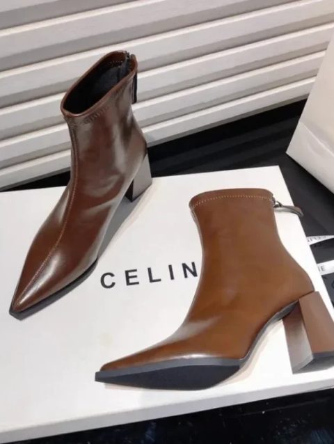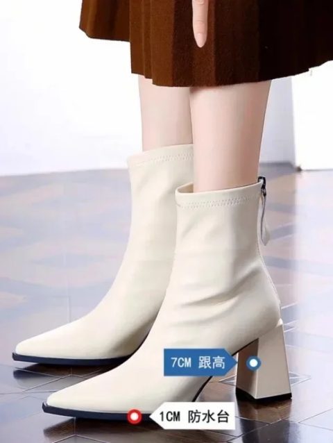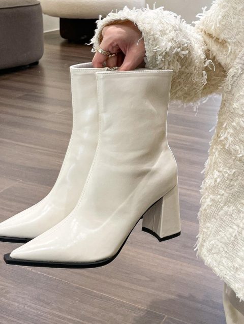 Ladies Shoes on Sale 2024 Fashion Zipper Women’s Boots Winter Pointed Toe Solid Short Barrel Chunky Heels Boots Botas De Mujer