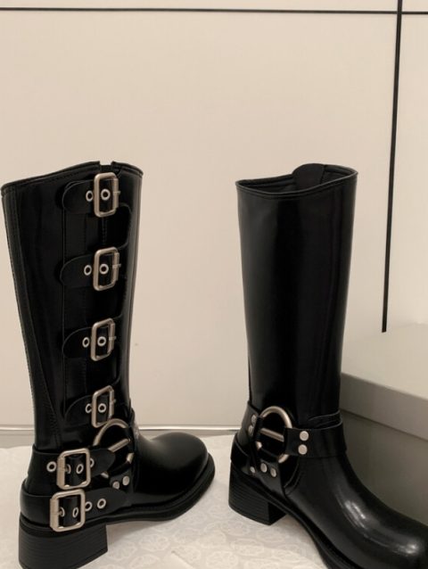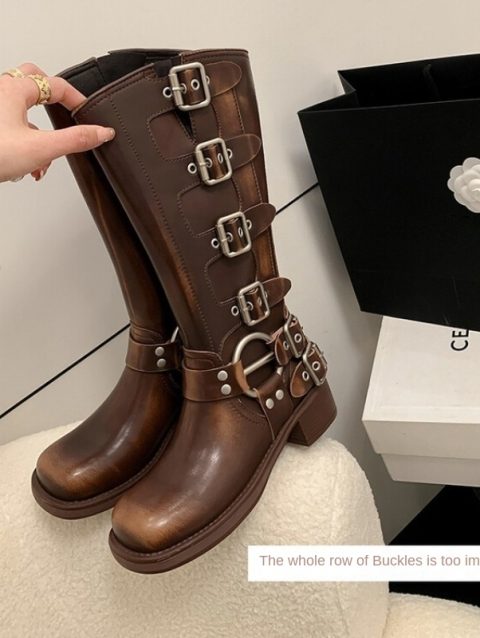 Platform Combat Boots Zip Chuny Heel Buckle Vintage Fashion Casual Luxury Designer Western Mid Calf Boots Shoes Woman