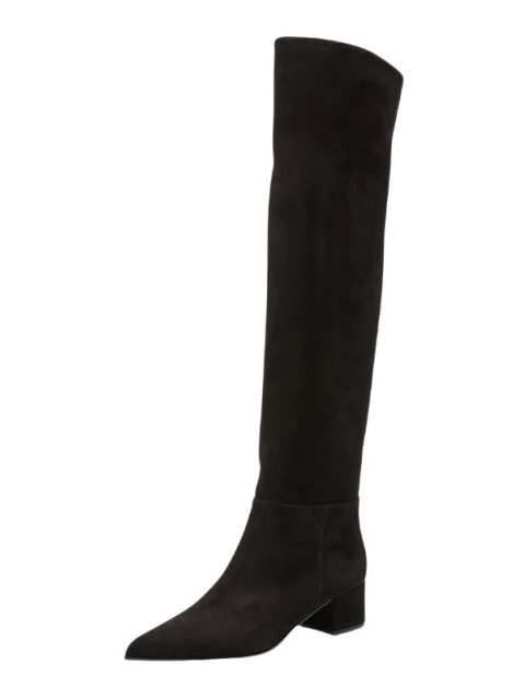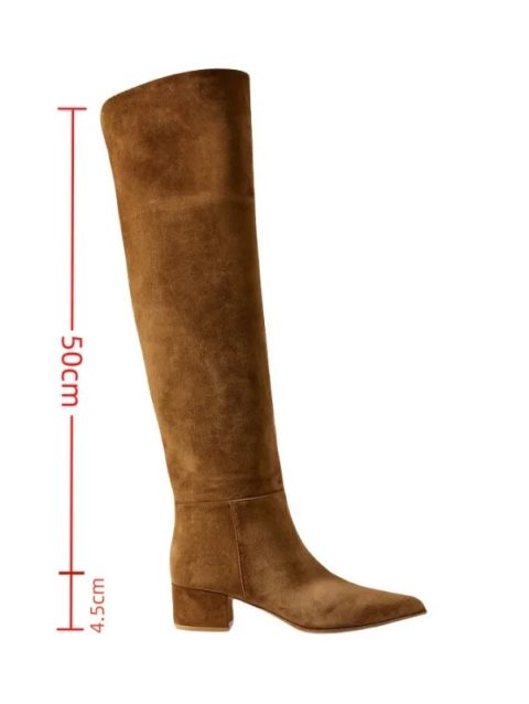 Ladies’ Autumn and Winter Suede Thick High-heeled Oversized Knee High Boots, European and American Sexy Versatile Sleeve Boots