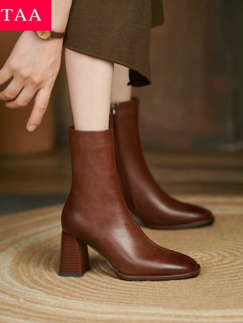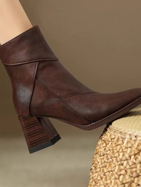 Pointed Toe Women Ankle Boots Fashion Elegant Soft Leather Shoes Thick Heel Women’s Modern Short Booties