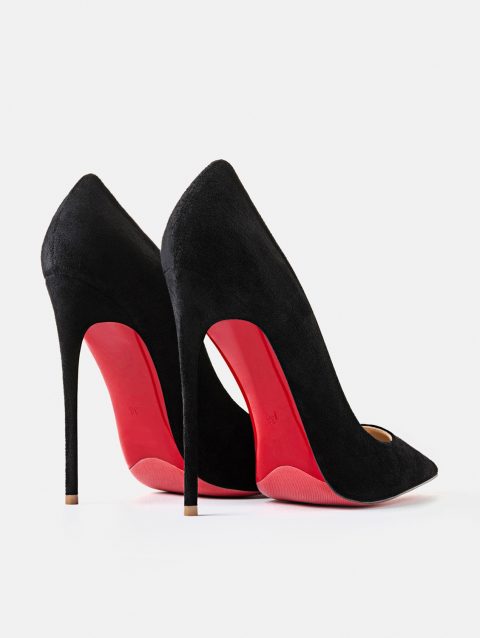 2025 Autumn New Women’s High Heels Shoes Sexy Pointed Suede Red Shiny Bottom Pumps Fashionable Temperament Shallow Wedding Shoes