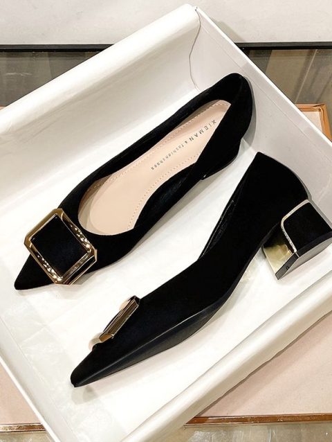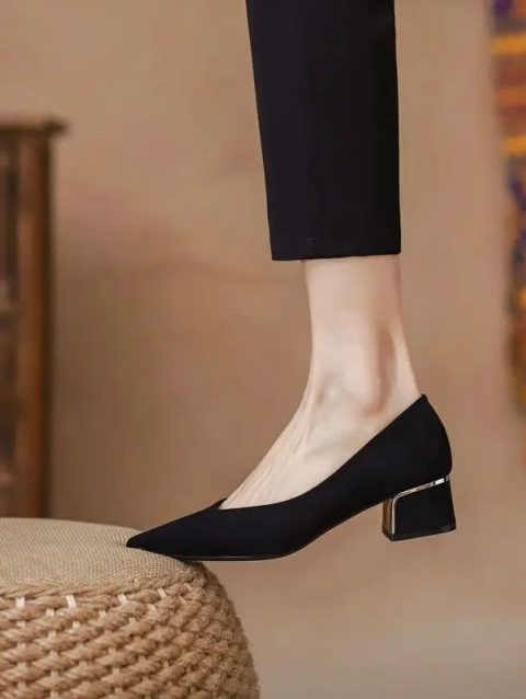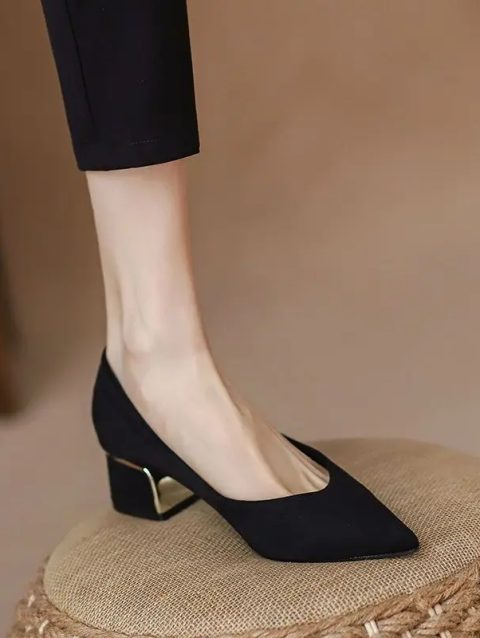 Fashion Small Thick Heel High Heels Matte Pointed Toe Shallow Mouth Casual Single Shoes Nude Party Dress Pumps Office Work Shoes