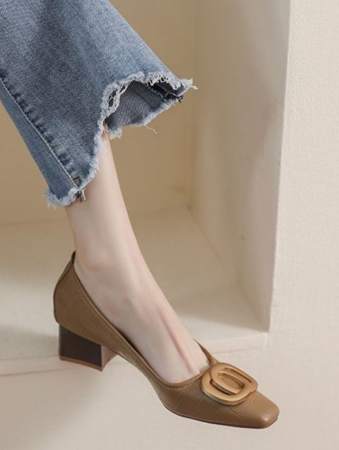 Cresfimix Zapatos De Mujer Women Fashion Black Slip on Square Heel Pumps Lady Cool Brown Comfort Summer Office Heel Shoes B6308