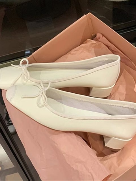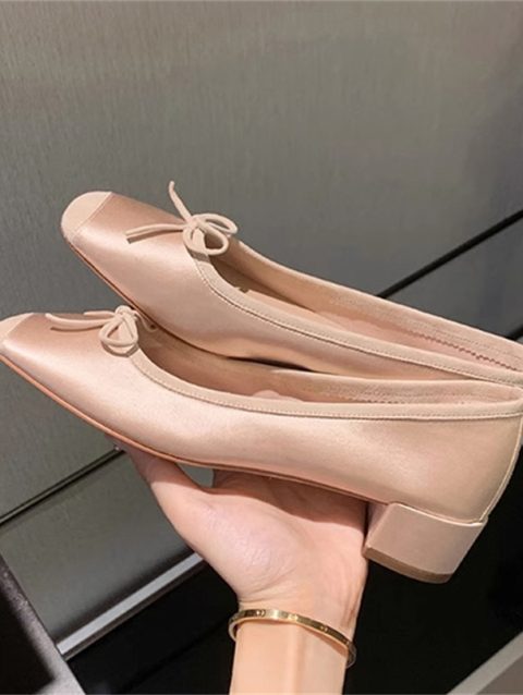 Fashion Elegant Silk Ballerinas Women Pumps Slip On Loafers Round Toe Square Heels Bowknot Casual Spring Autumn Shoes