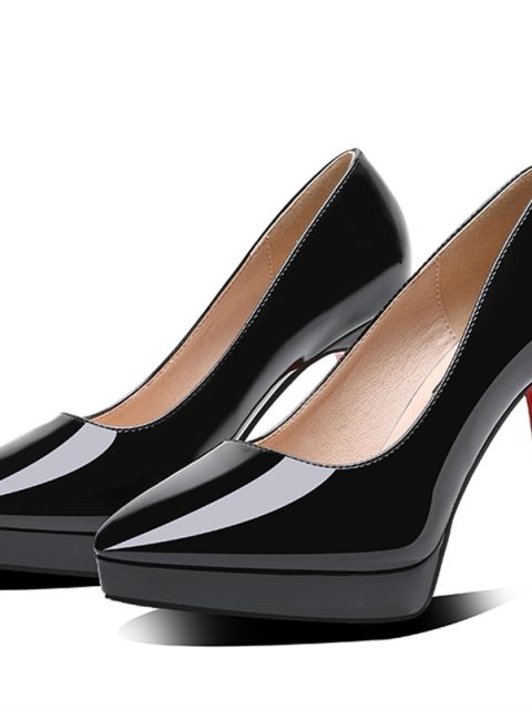 New High Heel Shoes Pointed Shallow Patent Leather High Heels Fashion Elegant Shoes Women Thin Heel Platform Work Shoes Pumps