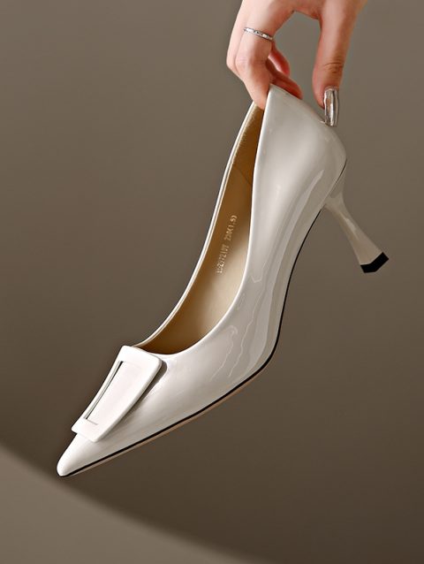Newest Style High Heels Sexy Pumps Women Shoes Metal Buckle Wedding Shoes for Women Bride Shallow Pointed Single Shoes Zaptos