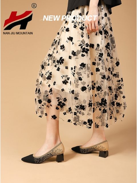 Knitting Single Shoes Pointed Toe Low Heels Shoes Women Spring And Autumn Small High Heels