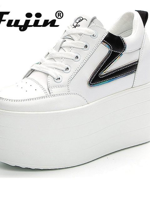 Fujin 12cm Genuine Leather Platform Wedge Chunky Sneaker Hidden Heels Casual Breathable Spring Autumn High Brand Vulcanize Shoes