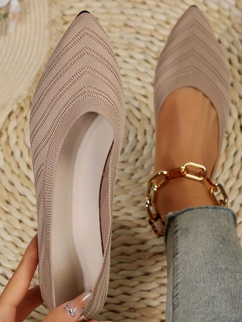Pointed Toe Flat Shoes Women Solid Color Knitted Slip on Shoes Casual Breathable Ballet Flats Women Loafers Comfort Ladies Shoes
