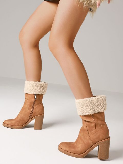 Winter Boots for Women Comfortable Side Zipper Mid Chunky Heel Suede Warm Fur Snow Ankle Boot Outdoor Party Shoes