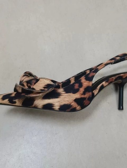 TRAF 2024 Woman Leopard Print Pointed End High Heels Pumps Summer Fashion Bow Knot Slender Elegant High Heels Mules Women Shoes