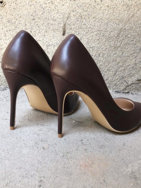 Veowalk Dark Brown Matte Women Stilettos High Heels Elegant OL Ladies Pointed Toe Pumps Italian Style Woman Slip on Dress Shoes
