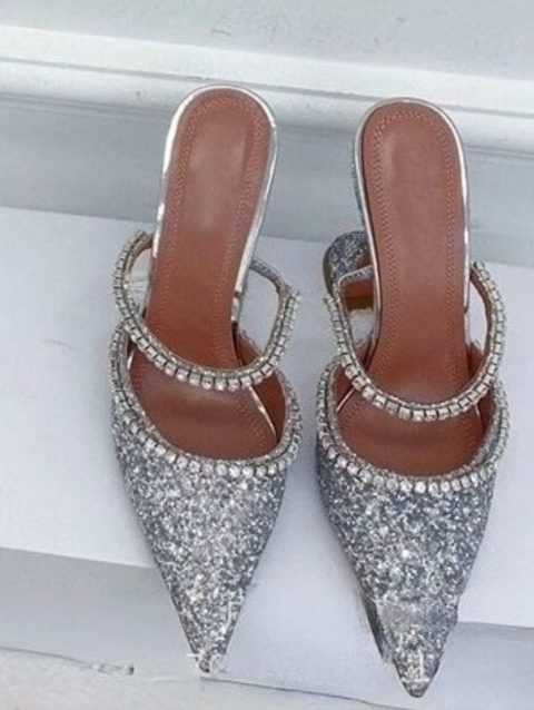 2025 European and American Rhinestone Sequins Horseshoe High -heeled Shoe with A Back -empty Sandals Female Baotou Wedding Shoes