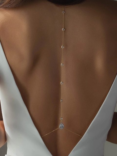 New Star Back Chain Body Jewelry for Women Luxury Metal Water Drop Zircon Backless Necklace Bridal Wedding Dress Jewelry