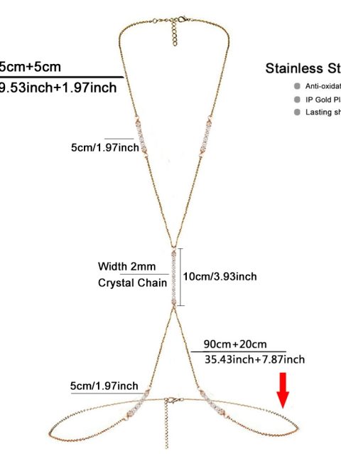 Stainless Steel Tassels Chain Long Crystal Belly Body Chain For Women Fashion Beach Sexy Body Jewelry