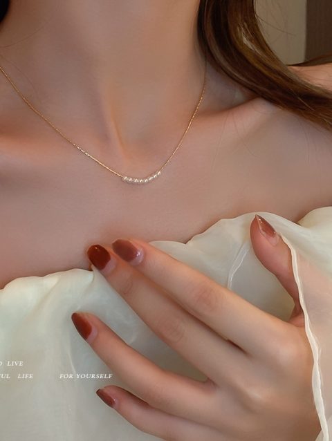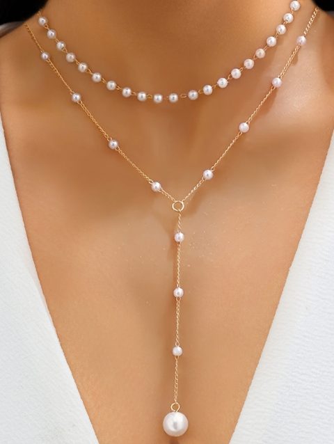 “Lxalry 18K Gold Plated Stainless Steel Faux Pearl Double Layer Necklace for Women – Elegant Tarnish-Free Hypoallergenic Jewelry