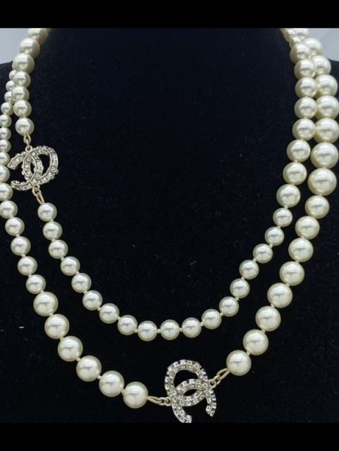Double Letter Pearl Diamond Sweater Chain, Small Fragrant Temperament Versatile Necklace, High-end Long Necklace Women