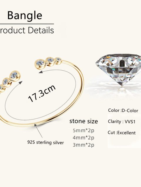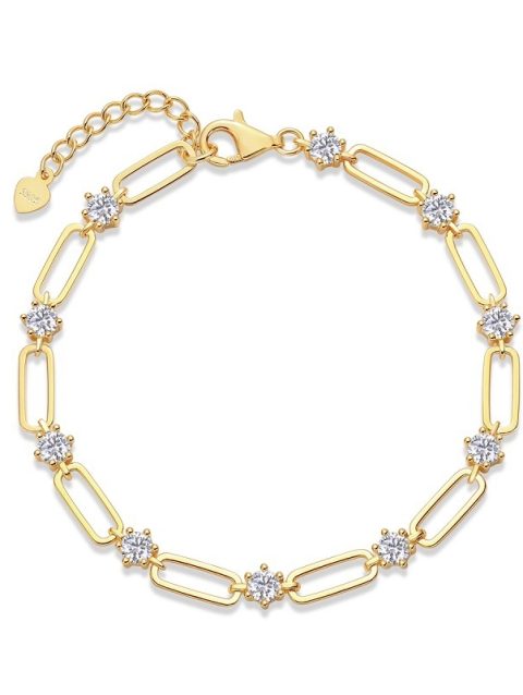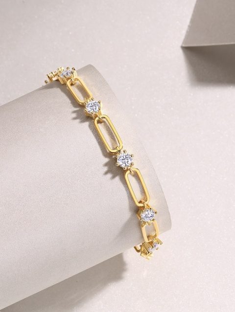 S925 Silver 4mm Moissanite Yellow Gold Chain Woman charm Bracelet Party Gift