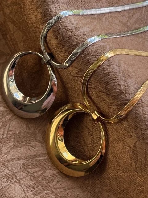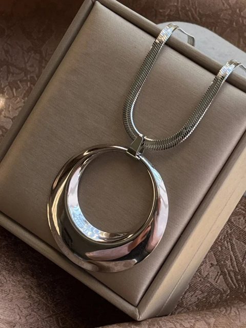 Stainless Steel Exaggerated Punk Big Round O Shaped Pendant Necklace Women Men Chunky Snake Blade Chain Grunge Steampunk Jewelry