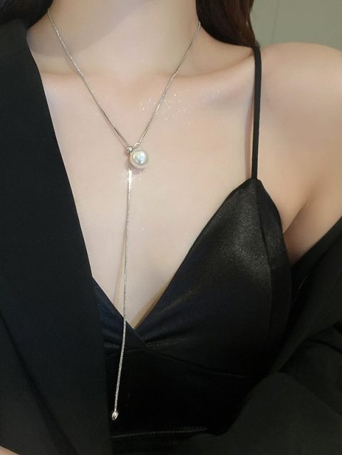 Single Pearl snake chain beads adjustable necklace Internet celebrity temperament clavicle chain fashion light luxury necklace
