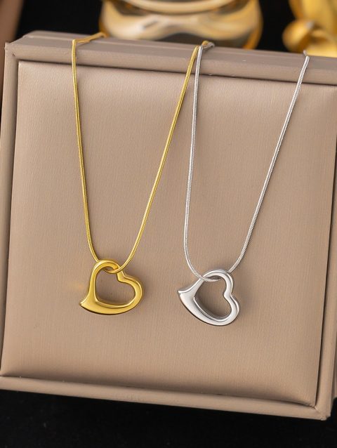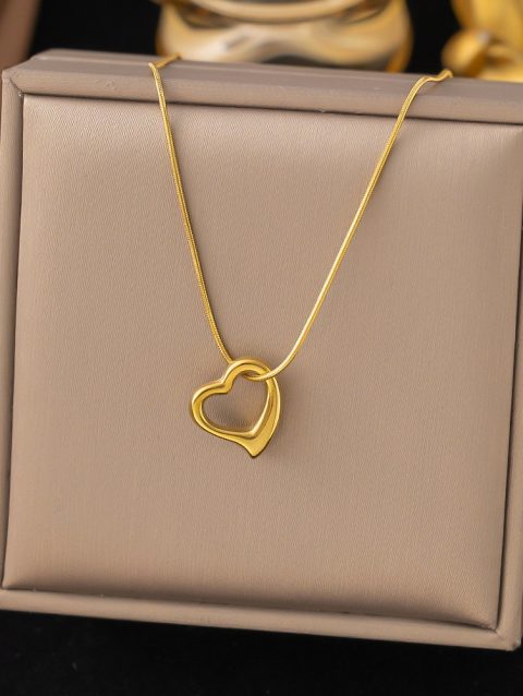 Stainless Steel Hollow Love Heart Pendant Snake Chain Necklace For Women Gold Color Clavicle Chain Non-fading Jewelry Gifts New
