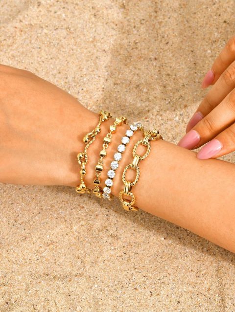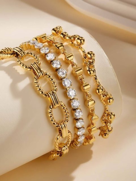 Vnox Classic Versatile Gold Plated Bracelet For Women, Stainless Steel Adjustable Chain, Fashion Brand Jewelry Crystal Bangles
