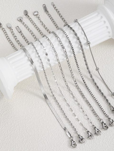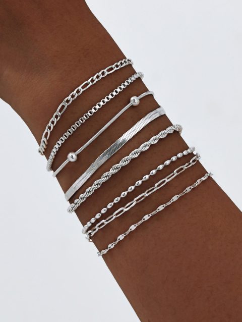 Women Chain Bracelet Silver Color, Stainless Steel Link Stackable Bracelets, Layered Fashion Accessories Gifts