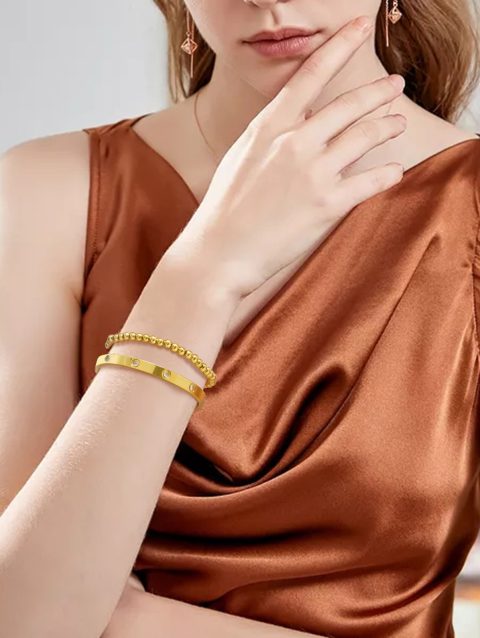 Vnox 2-8mm Women Bracelets Set, Simple Stacked Gold Plated Stainless Steel Beads Bracelets , Glam Love Gift Cuff Bangles for Her