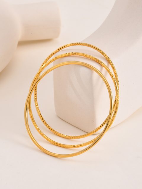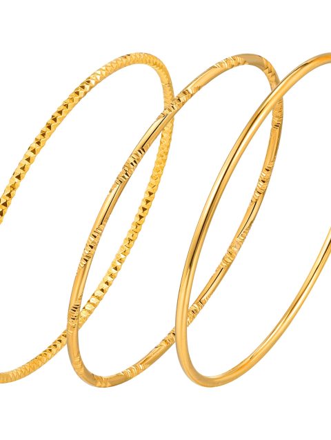 Women Bangle Bracelet Stainless Steel, 18k Gold Plated 2mm Stackable Glossy Thin Jewelry
