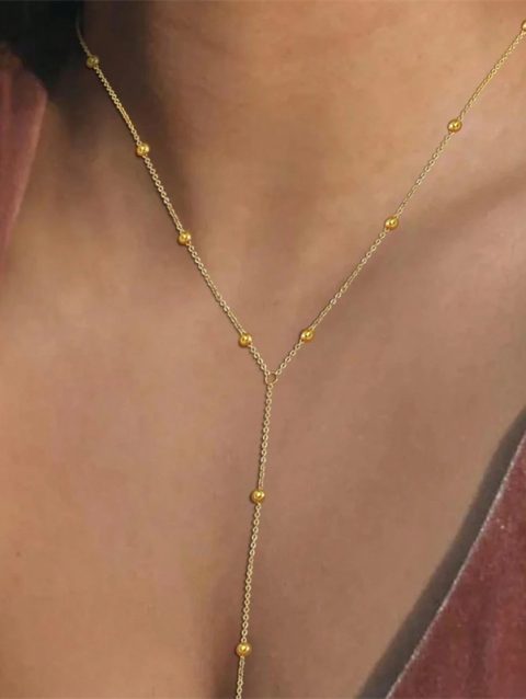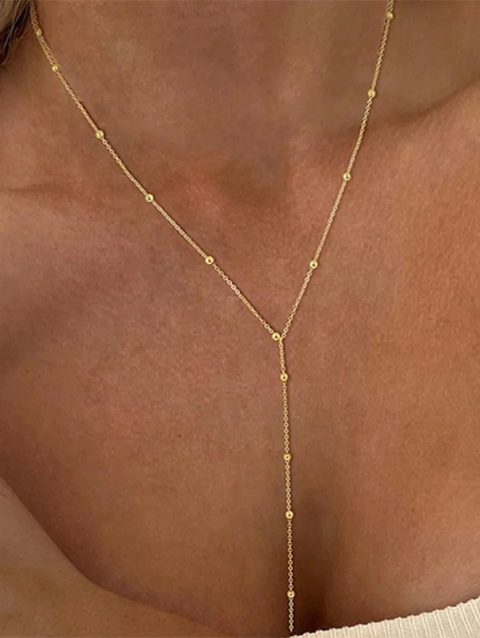 Vintage Gold Color Long Chain Drop Necklaces for Women Simple Metal Geometric Bead Tassel Choker Girls Party Aesthetics Jewelry