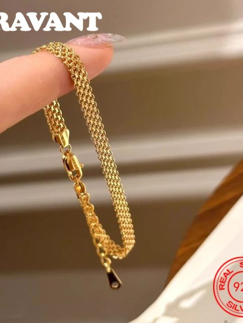 Aravant 925 Silver 18K Gold Watch Strap Bracelet Chain For Women Girls Fashion Jewelry