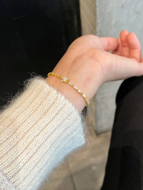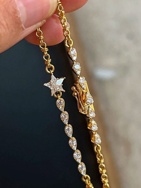 999 24K real gold star four-pointed star bracelet for women ins full diamond fashion versatile bracelet temperament hand jewelry
