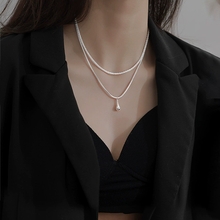 925 Sterling Silver Starry Sky Double Layered Water Drop Necklace for Women Collarbone Chain Pendant Jewelry Wedding Party Gift