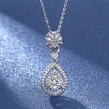 925 Sterling Silver Necklace Clavicle Chain Sparkling Zircon Teardrop Women’s Pendant Necklace Birthday Party Gift Jewelry Gift