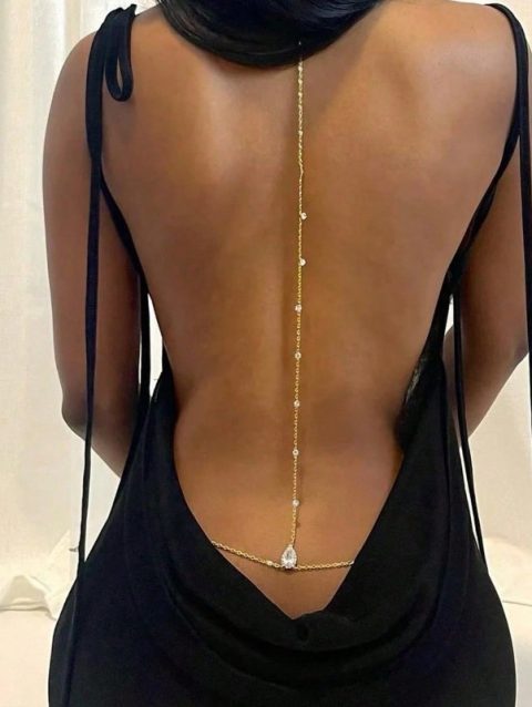Bride Backless Rhinestone Waterdrop Body Chain Belly Waist Necklace for Women Mom Girlfriend Summer Beach Body Jewelry