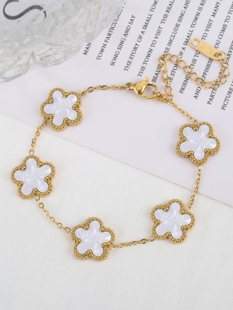Classic Luxury Stainless Steel Bracelet Ladies Adjustable Five Flower Bracelets for Women New Fashion Party Jewelry Gifts Clover