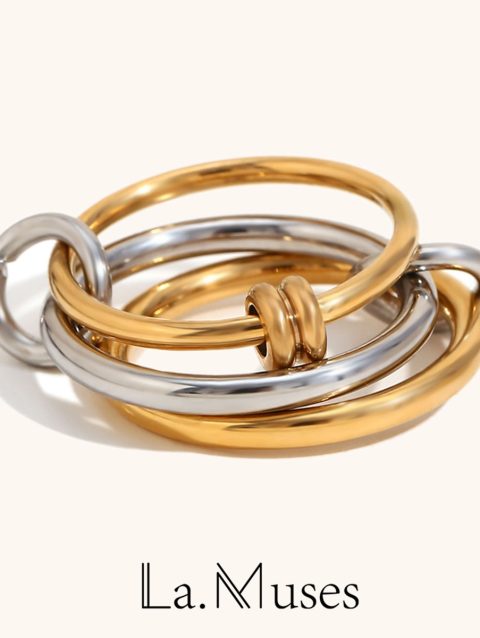 La. Muses Color Mix Dual Tone Multi-layer Circle Stainless steel Women’s Ring Trendy Fashion Daily Versatile Jewelry