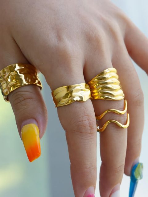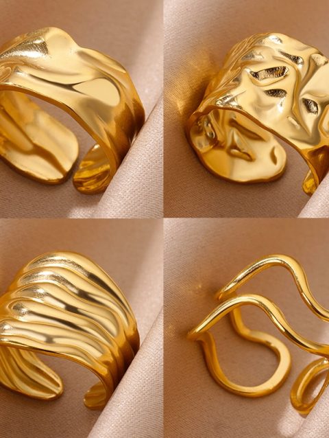 Irregular Geometric Chunky Opening Rings for Women Stainless Steel Gold Color Wedding Ring Aesthetic Fashion Jewelry Party Gift