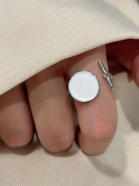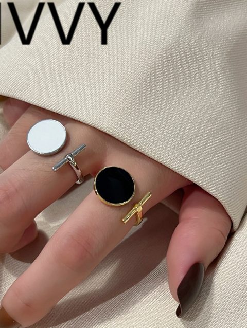 LIVVY Silver Color Geometric Black Rhinestone Round Ring Woman Korean Vintage Fashion Adjustable Couple Accessories Gifts