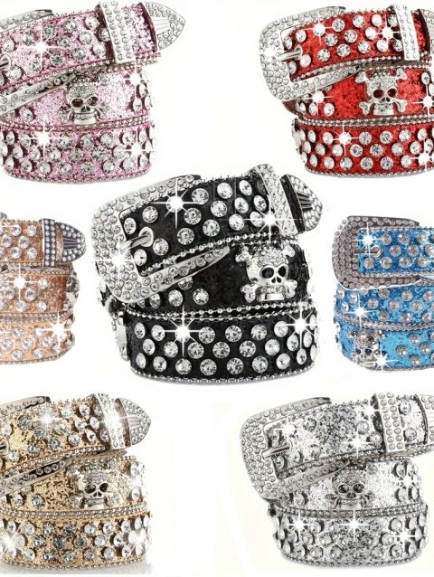 Stylish Rhinestone Western Cowgirl Style Y2K Belt Sparking Pu Leather BB Belts Jeans Dress Accessories For Women