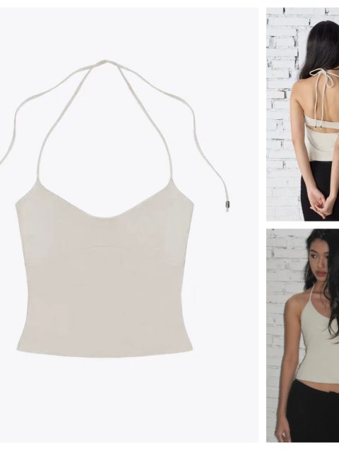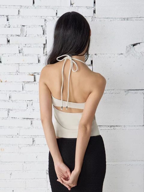 CUTENOVA Women’S Solid Color Hanging Neck Rope Button Backless Hollow Out One Piece Sexy Vest Top Summer New Hottie Girl Y2K