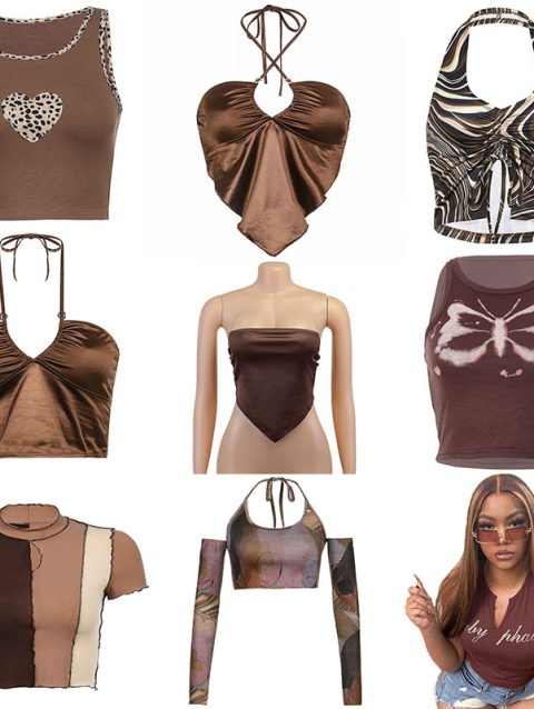 Brown 2021 Vintage Clothes Y2k Corset Crop Top Women Gothic Sexy Cyber Baby Tee Aesthetic Grunge 90s Ropa Fairycore Summer New