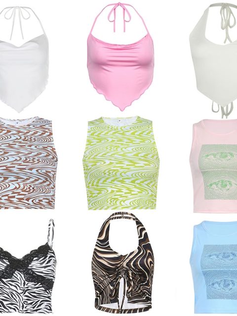 ank air multi-color lace up neck vest with cherry pink suspender and hollowed out back design for women’s summer