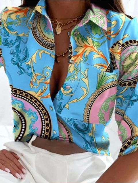 Casual New Long Sleeve Lapel Slim Tops Women Fashion Commute Chic Clothes Blusas Office Ladies Multicolor Printed Blouses Shirts