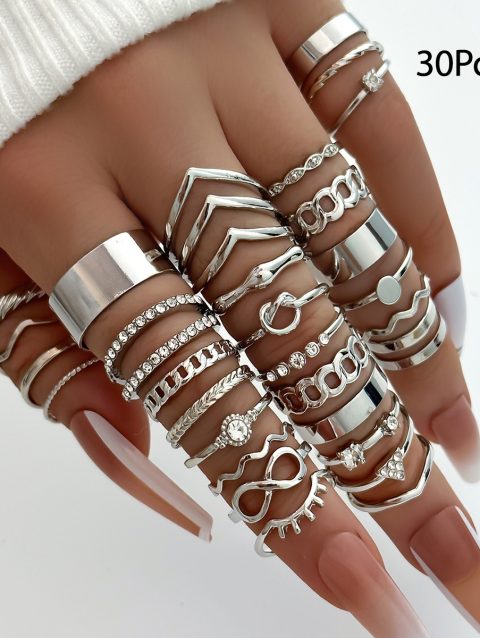 30Pcs Bohemian Geometric Knuckle Rings Set For Women Gold Silver Color Finger Ring Girls Fashion Party Jewelry Accessories