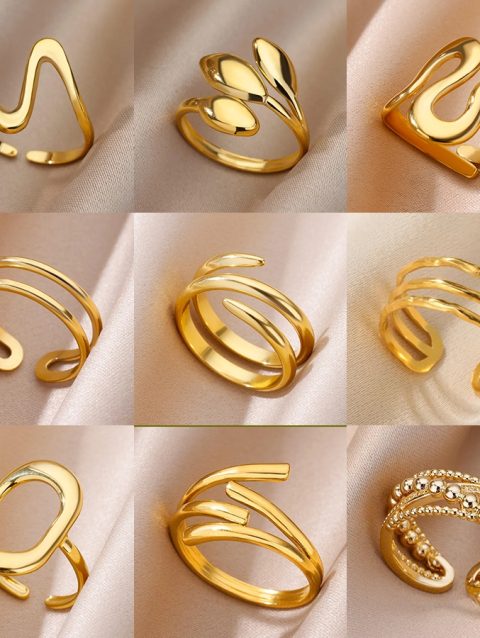 316L Stainless Steel Rings for Women Gold Color Multilayer Geometric Open Ring Vintage Waterproof Wedding Aesthetic Jewelry Gift