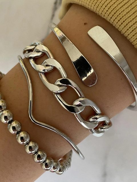 4pcs Punk Curb Cuban Chain Bracelets Set for Women Simple Thick Gold Color Charm Bracelets Fashion Jewelry Accessories New