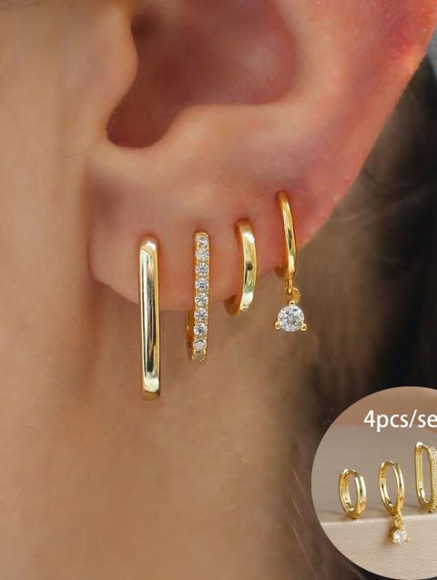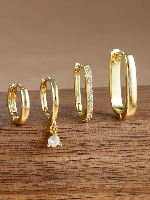 4PCS Luxury Gold Plated U-shape Hoop Earrings Set for Women Geometric Pendant Huggie Punk Unisex Rock Earring Piercing Jewelry