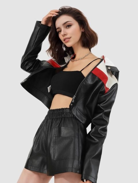 Women Faux Leather Jackets Patchwork Motorcycle Suit Aviator Jacket Short Version Coat Leather Jacket Handsome Oversized Skinny
