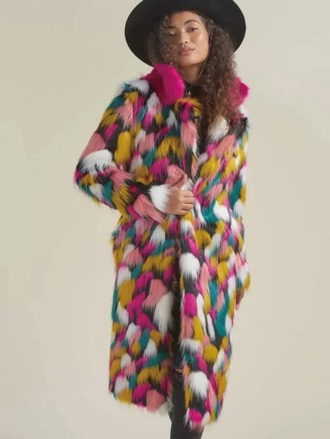 Women Faux Fur Long Coat Rainbow Colorful Fashion Faux Fox Fur Autumn Winter Lady Casual Street Warm Quality 2023 Cloth
